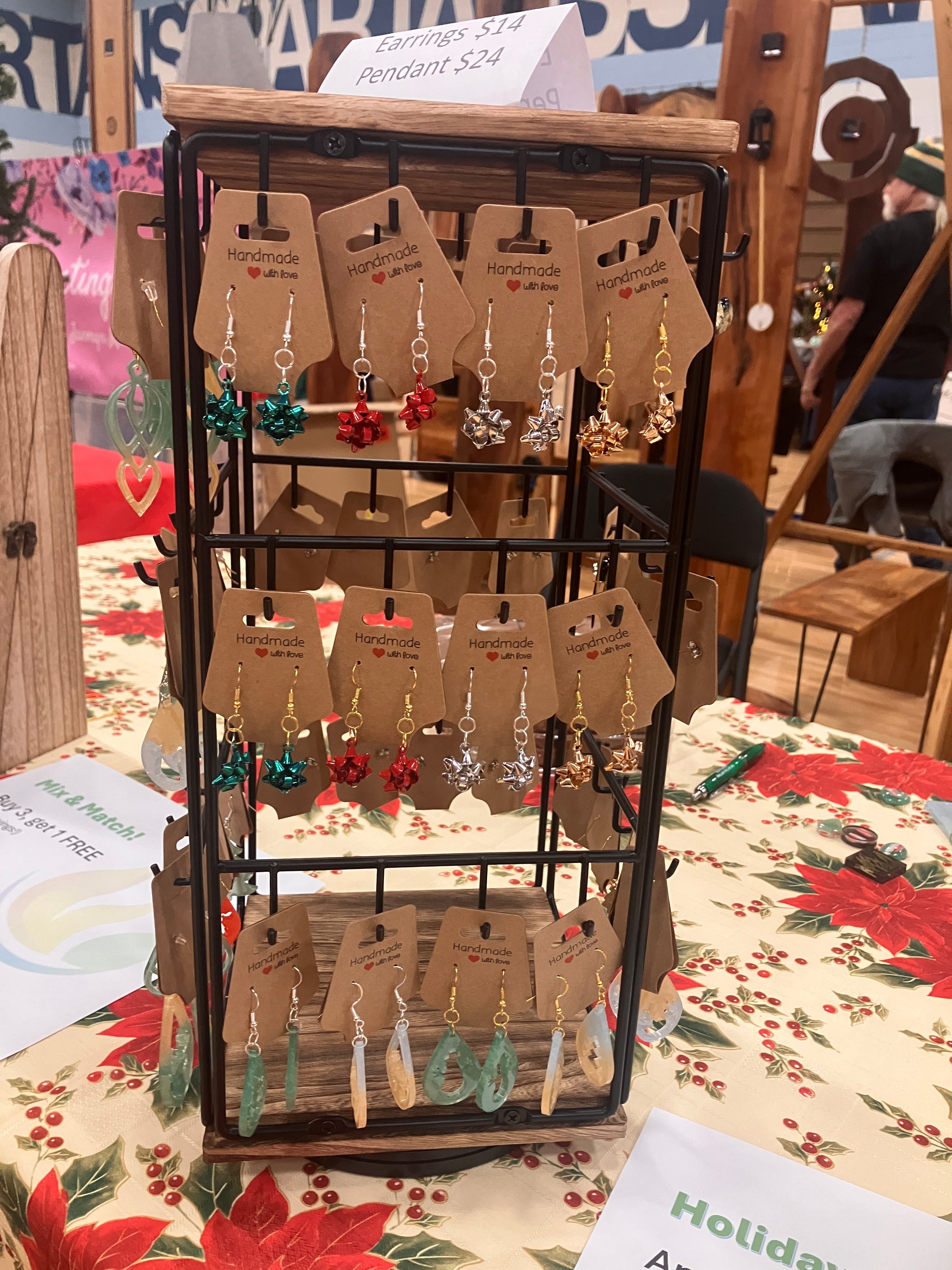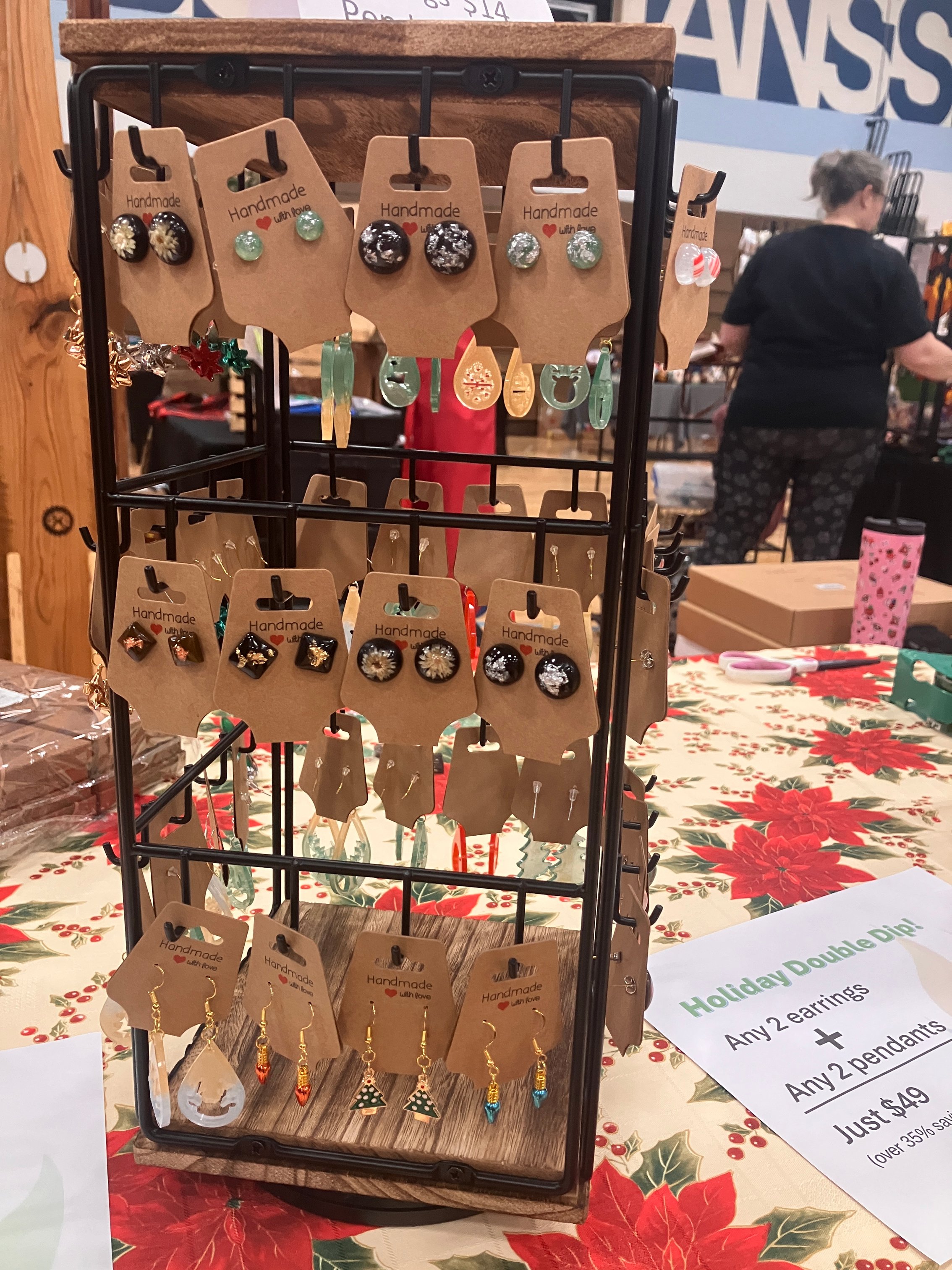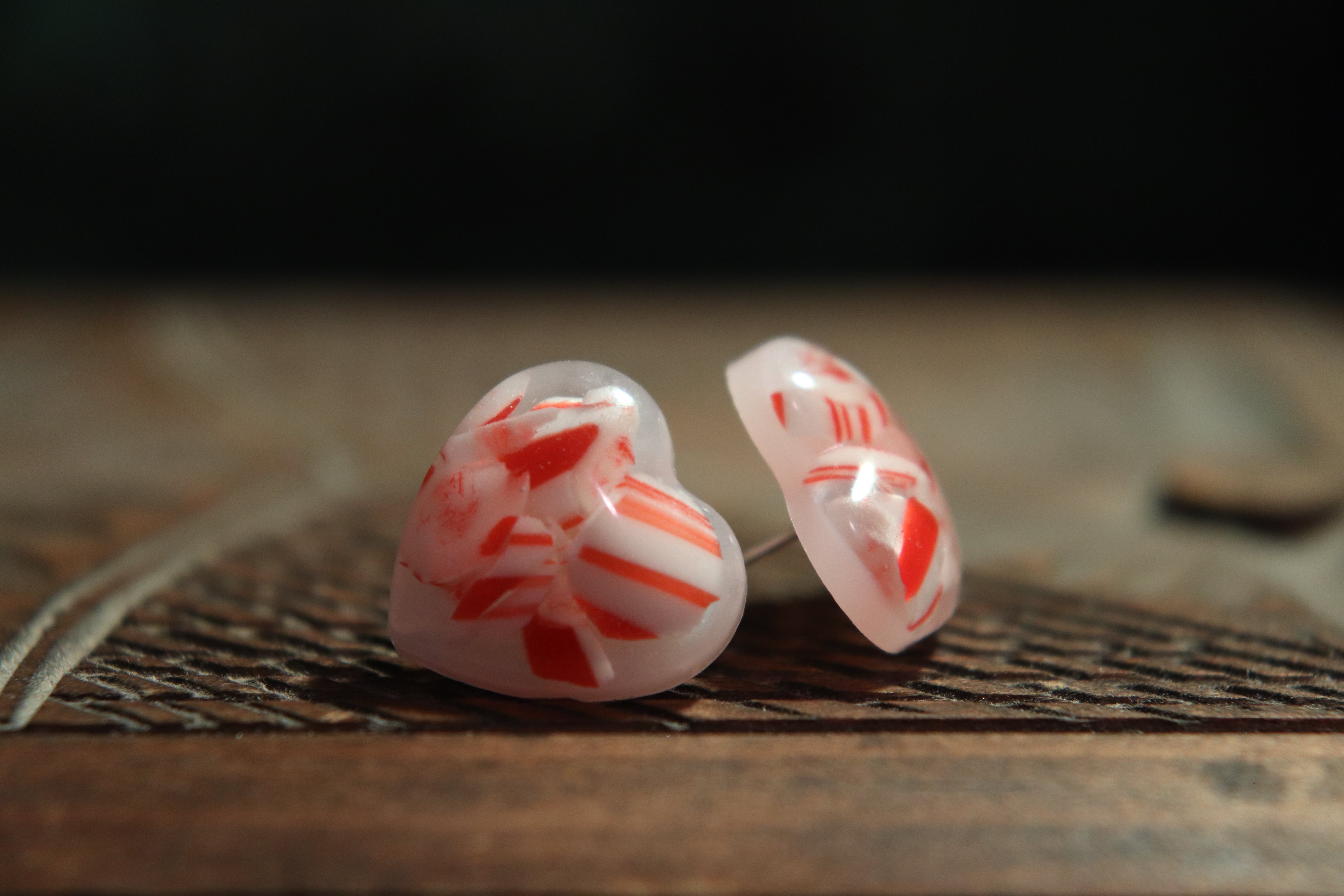 While I have a few common themes, each earring is unique. I love embedding plants, but also have fun finding other materials like candy canes! If you have a favorite plant, candy, kitchen spice, or whatever, there's a good chance that I can make you a pair of earrings featuring it. Just ask!